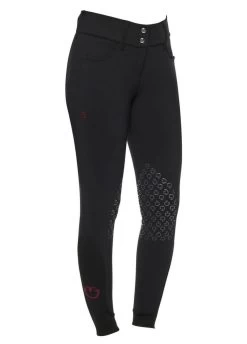 The American riding breeches for women are made from 4-way stretch jersey. The technical material provides high breathability and freedom of movement, adhering perfectly to your body, without constriction. The knee grip allows appropriate stability on the horse, while the stretch-knit socks improve the fit beneath your boots. It features two front pockets and a zip up front with button.