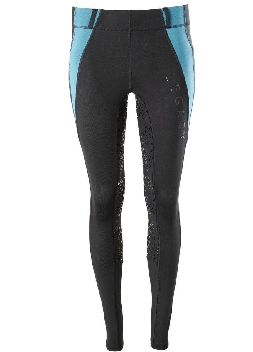 Legacy Ladies Winter Riding Tights – Black/Turquoise