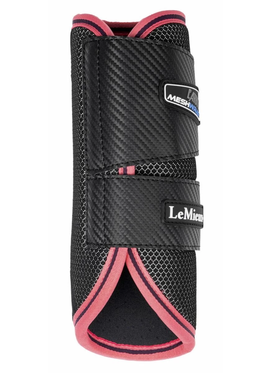 The LeMieux Carbon Mesh Wrap Boots are the perfect combination of the support of polo bandages with the protection of brushing boots and an essential part of your horse’s wardrobe. Made from 100% perforated 3D mesh, these boots are lightweight and breathable to keep tendons cool during work. The stretch cotton inner lining’s is quick drying, while the wrap round style offers a close, flexible fit. The Carbon Mesh Boots can be worn on front or hind legs and are available in colours to match your LeMieux Saddle Pads whilst keeping an athletic and professional look. Sold in pairs. Not suited to horses that brush heavily. ProShell Brushing Boots or Mesh Brushing Boots would be more ideal for these horses.
