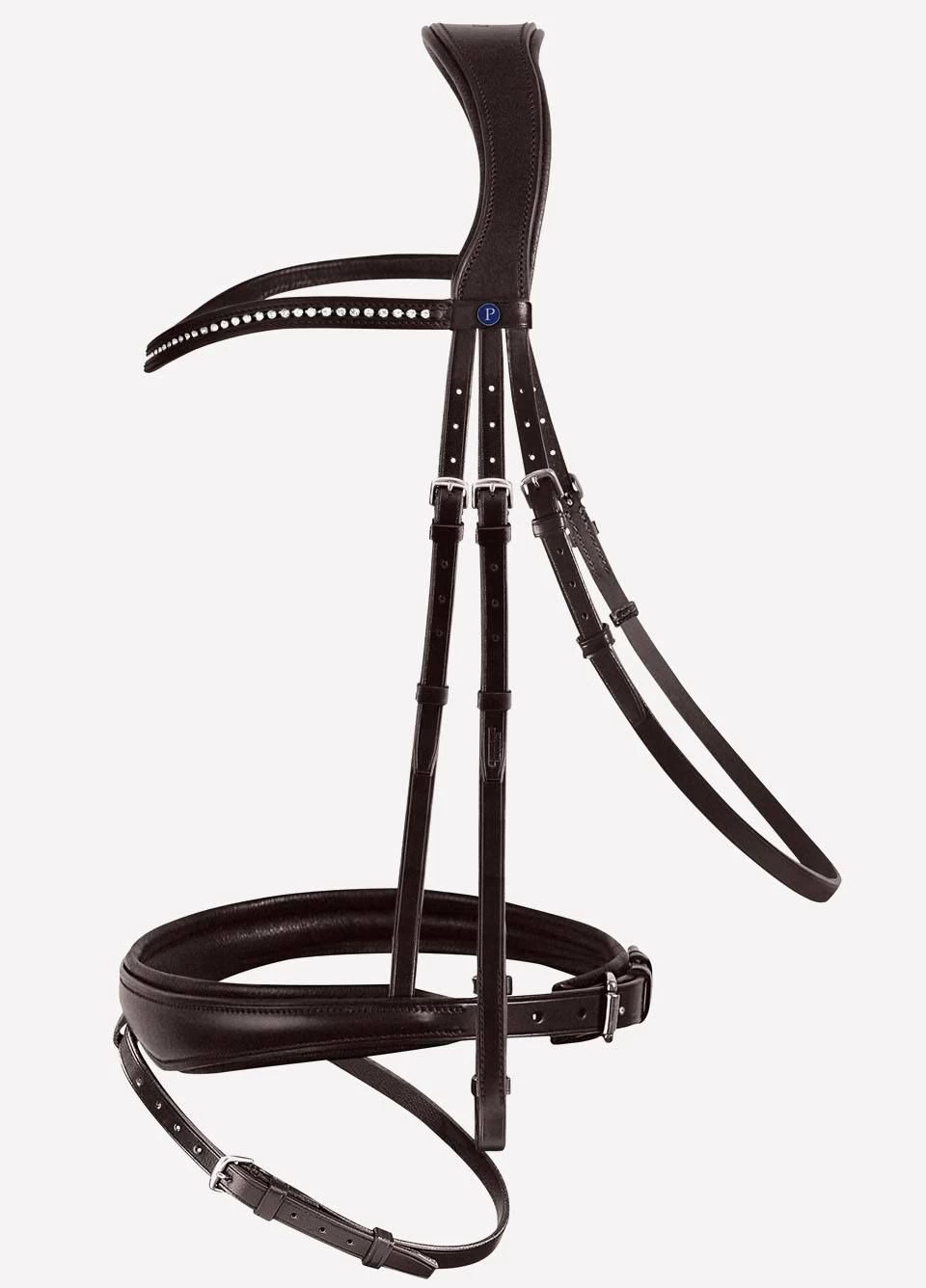 The Passierblu Spirit Snaffle Bridle also has a waved browband with medium sized strass crystals which adds that touch of luxury, and sparkle.