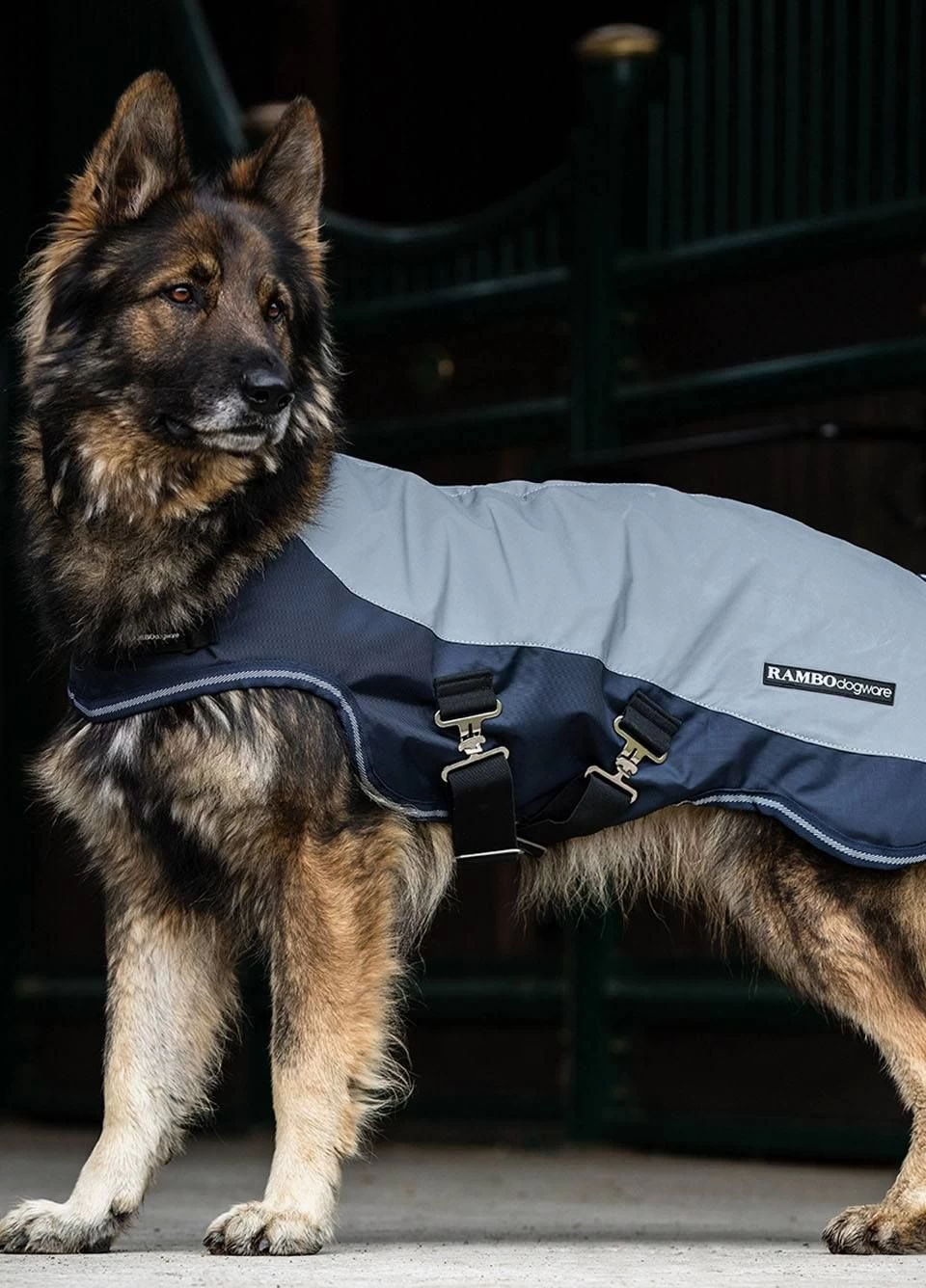 The Rambo Reflective Dog Rug is designed to be warm and waterproof, and features a 100g fill.